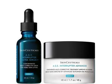 This anti-aging bundle features best sellers A.G.E. Interrupter Ultra Serum and A.G.E. Interrupter Advanced. A.G.E. Interrupter Ultra Serum, is a double-patented skin firming serum for visible lift. This serum tightens 4 key areas including the forehead, cheeks, jaw line, and neck, for a more visibly sculpted appearance.